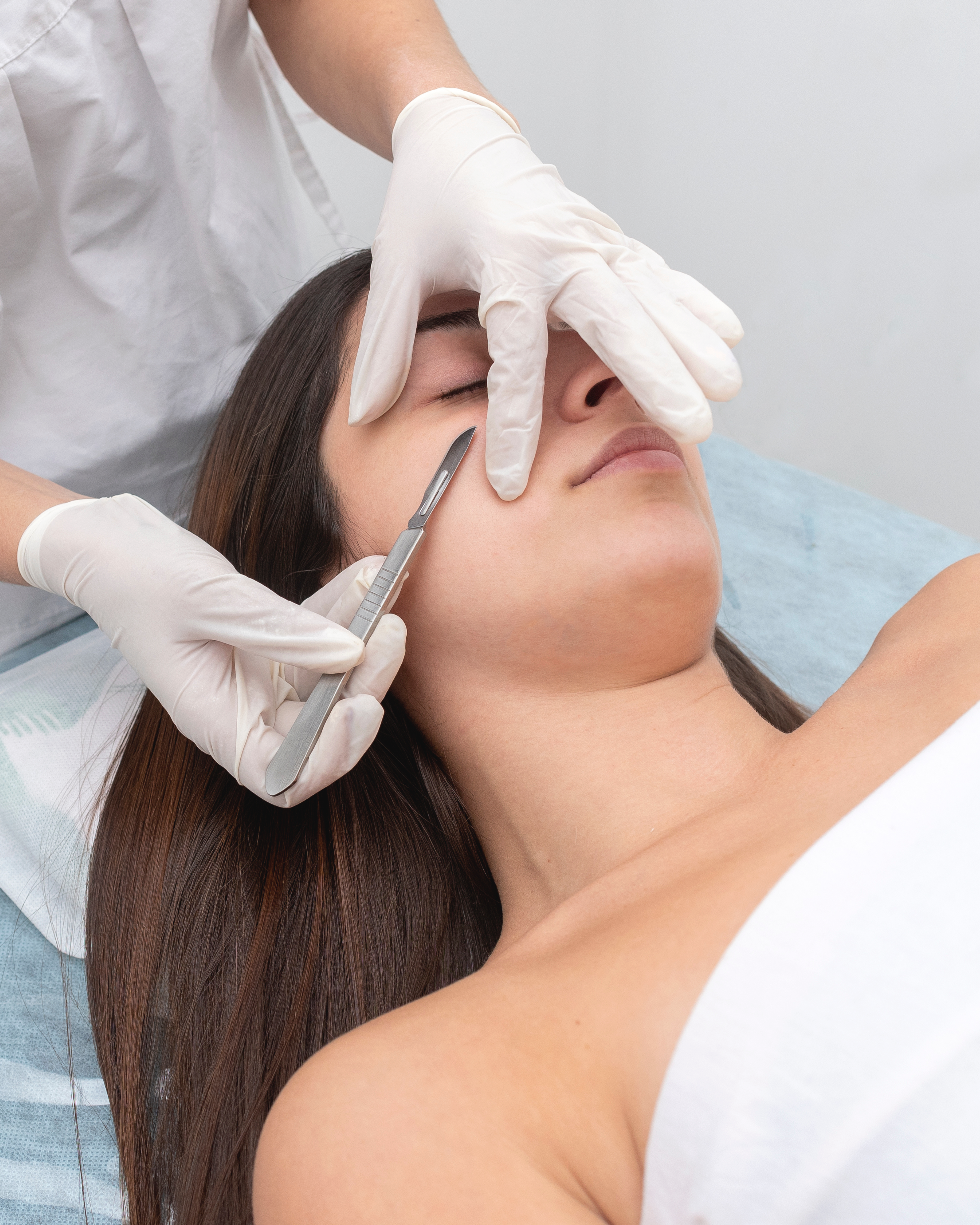 Dermaplaning is a cosmetic procedure that uses a surgical blade to exfoliate the skin, removing dead skin cells and fine vellus hairs (peach fuzz).
